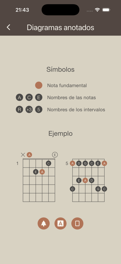 - Biblioteca completa de acordes, escalas, arpegios y progresiones.