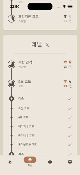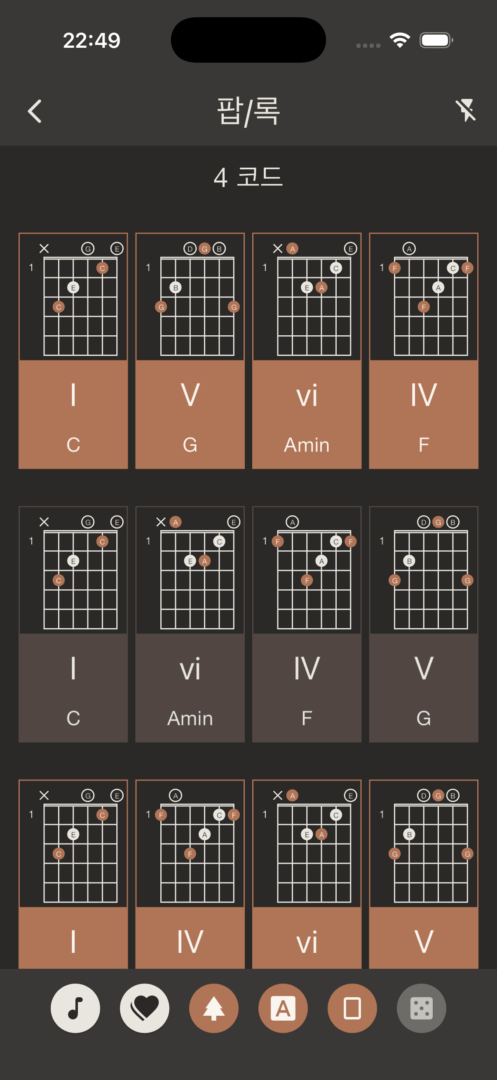 - 코드, 아르페지오, 스케일 등 전체 라이브러리